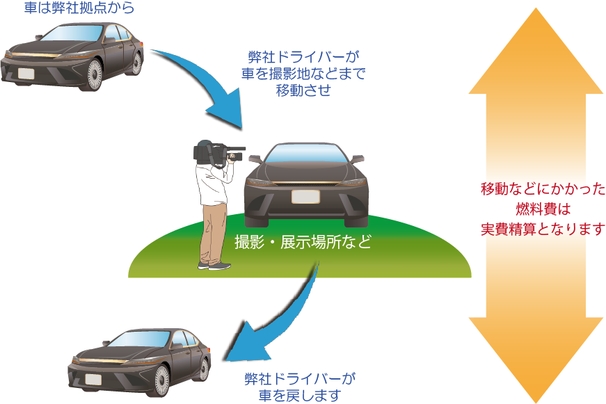 ご指定の場所に車をお届します。移動は弊社ドライバーが行います。